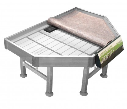 Tåligt butiksbord i aluminium, finns i flera storlekar.. Detta bidrar främst till att få en effektiv layout. Hörnbordet är utrustad med tömningsventilen som gör det enkelt att tömma bordet på vatten.
