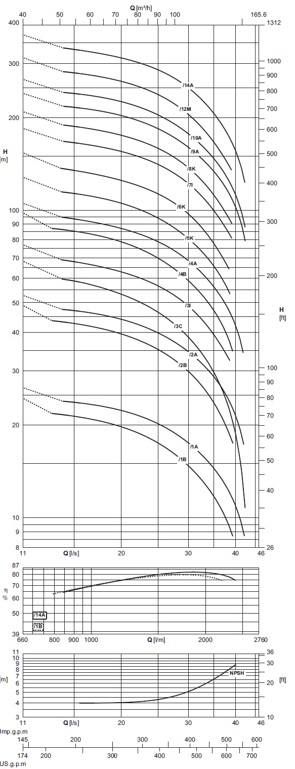 • Dränkbara motorn av rostfritt stål Caprari E8SX57/2B+MACX615A 11kW flöde 135m³/h
