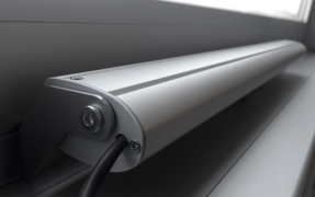 Elektriskt ställdon med dubbellänkad kedja, i en elegant pressgjuten aluminiumprofil, komplett med fästen och tillbehör för botten hängda fönster utåtöppnande för rökevakueringsapplikation.