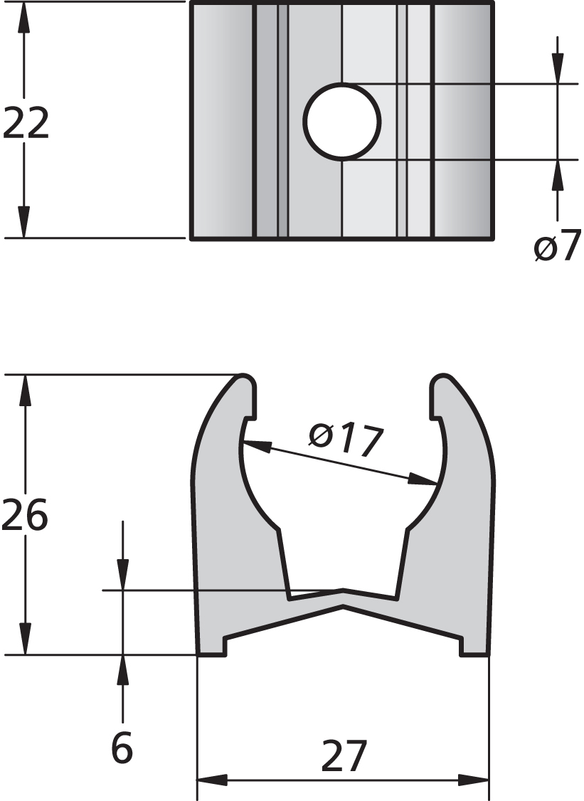 • Klämma för aluminiumrör 19mm