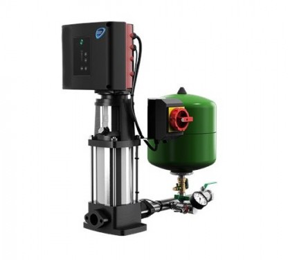 - Grundfos Hydro Solo-E booster med en pump är en kombinerad enhet bestående av en E-pump (CRE) utrustad med isolera ventil, backventil, utloppsrör, trycktransmitter, manometer och membran tank.