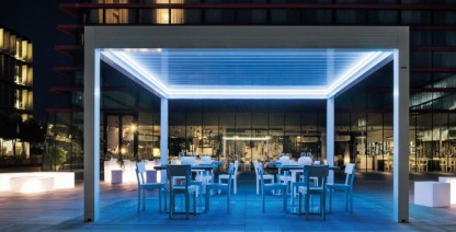 Solskydd kan styra mikroklimatet i miljön under skyddskåpan genom att skapa naturlig ventilation. Alla tekniska innovationer verkar harmoniskt i den lackerade aluminiumkonstruktionen, kännetecknad av en väsentlig design, ger en arkitektonisk stil.